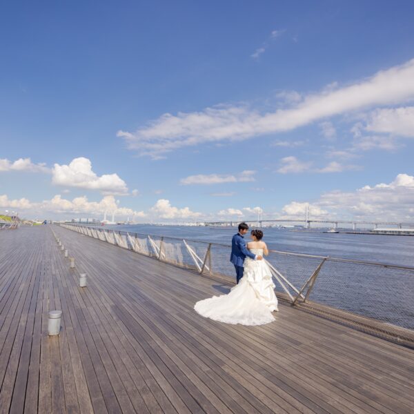 2025/12/08横浜の海沿いに広がる大さん橋デッキは、広々とした空と港を望むことができる場所です。日差しの反射や空模様によって写真に映る背景の表情が変わるため、ロケーション撮影の場として訪れる方が少なくありません。 フォトウェディングを …